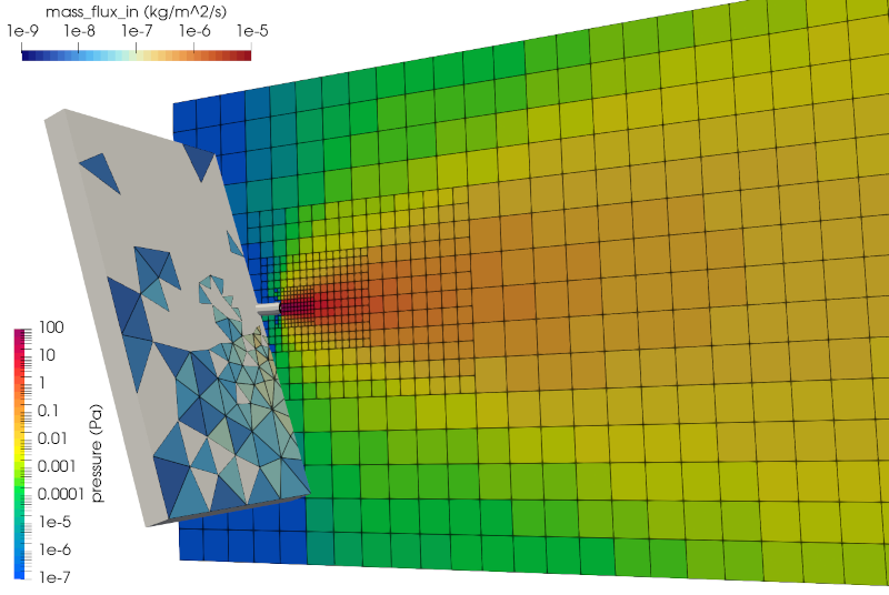 - Rarefied flow: DSMC Variable Hard Sphere (VHS) model with support for mesh refinement
